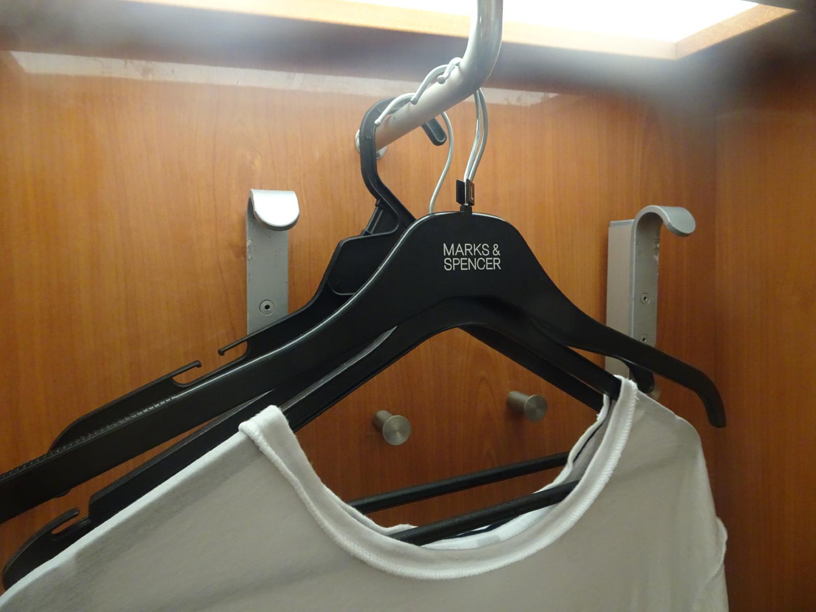 ![]() The cabin comes with a fairly rag-tag bunch of coathangers. UTC Time: 21:22, Saturday 10 August 2019 Local Time: 22:22, Saturday 10 August 2019 Estimate of longitude: 1° 15' 49.64" E = 1.263790° Estimate of latitude: 51° 56' 55.79" N = 51.948830° Possible error on position estimate: 500 metres | |