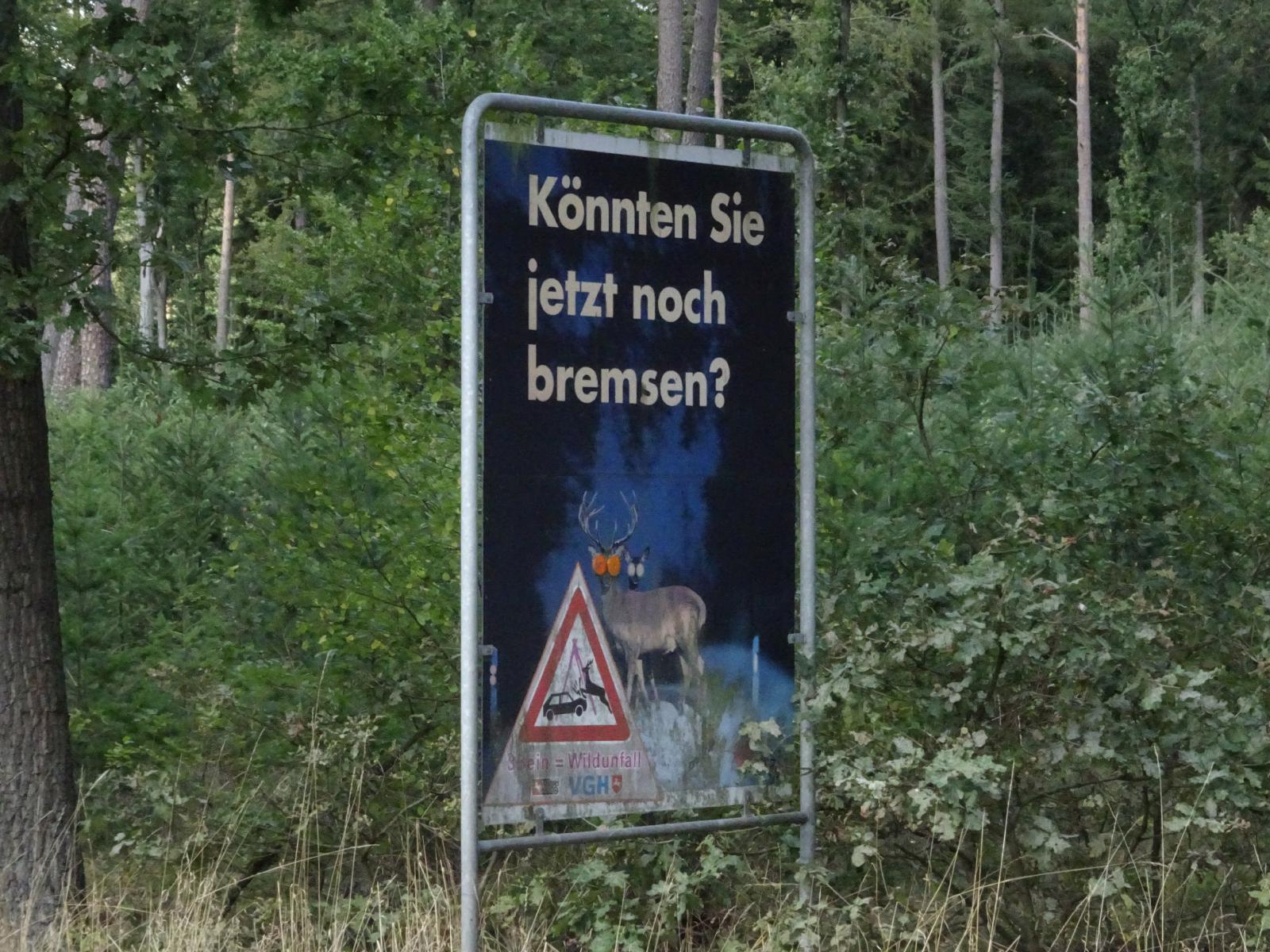 ![]() The deer on the sign has reflective eyes. UTC Time: 10:21, Monday 02 September 2019 Local Time: 12:21, Monday 02 September 2019 Estimate of longitude: 9° 6' 40.36" E = 9.111210° Estimate of latitude: 53° 13' 52.32" N = 53.231200° Possible error on position estimate: 20 metres | |