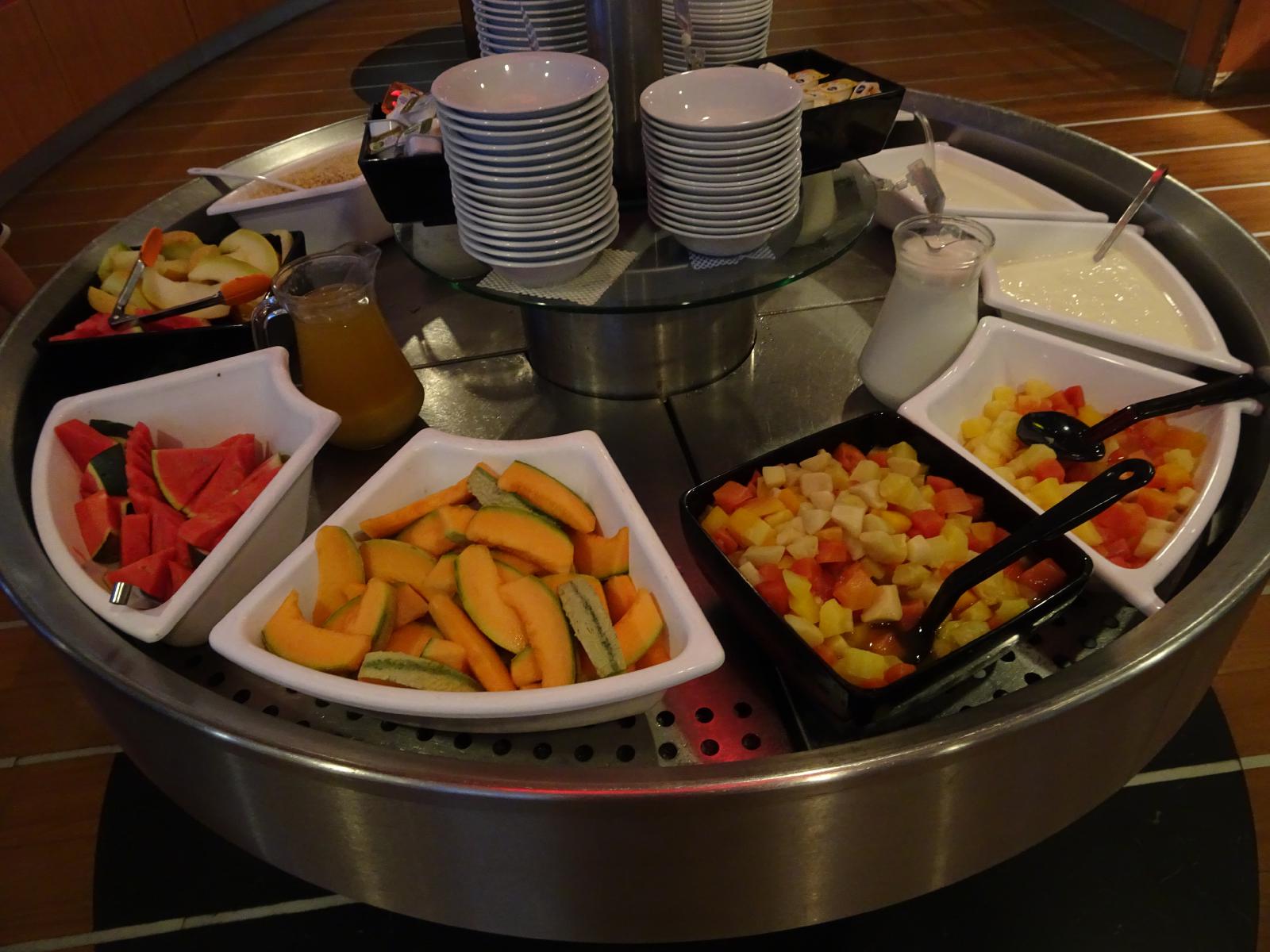 ![]() The selection of fruit at breakfast is quite melon-heavy. UTC Time: 04:49, Sunday 11 August 2019 Local Time: 06:49, Sunday 11 August 2019 Estimate of longitude: 3° 45' 0.00" E = 3.750000° Estimate of latitude: 51° 57' 54.00" N = 51.965000° Possible error on position estimate: 10000 metres | |