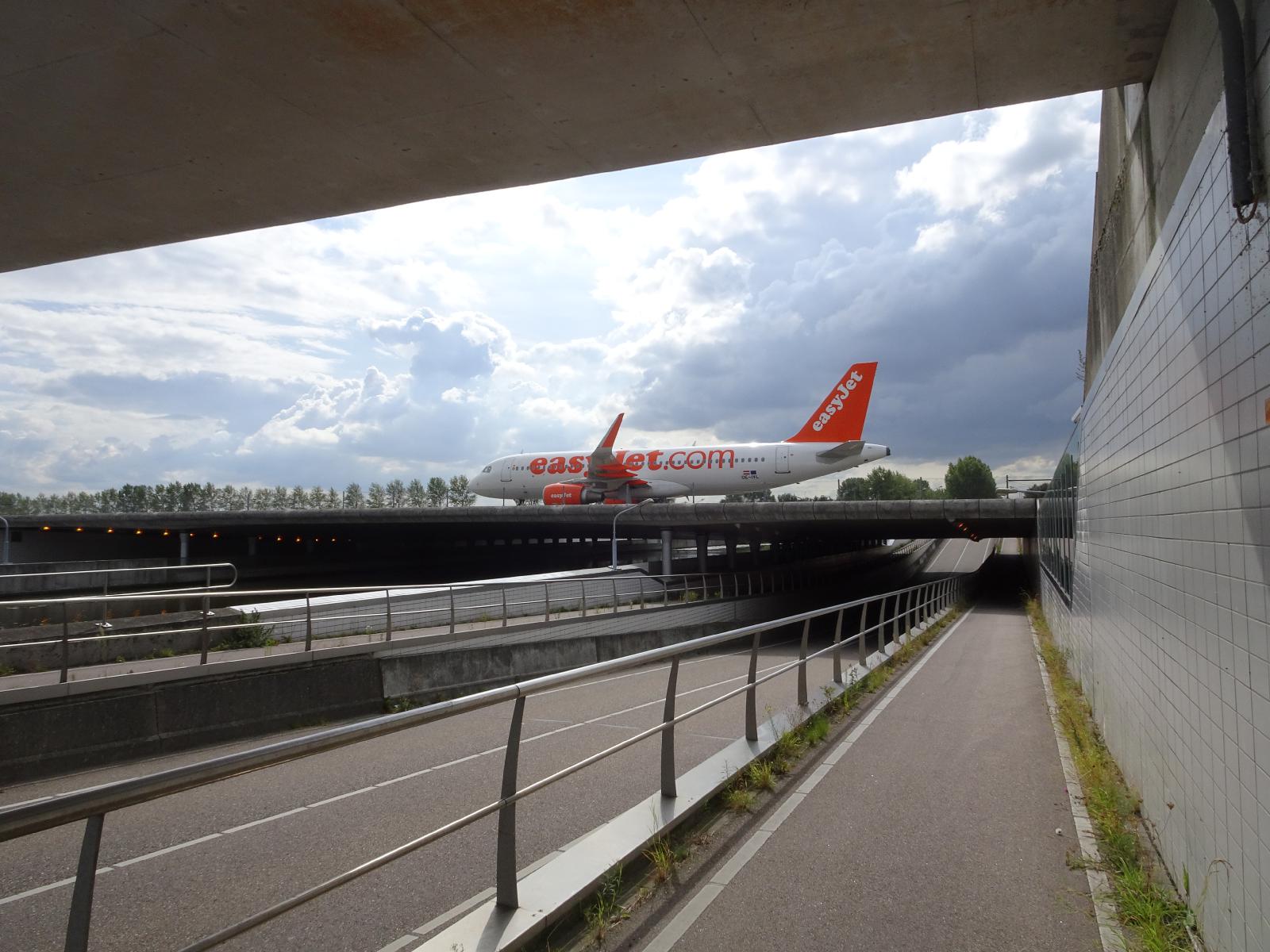 ![]() The taxiway isn't as thick as I expected. The surface of the taxiway is about three metres below sea level. The road goes low enough for those buses to fit underneath. UTC Time: 12:43, Monday 09 September 2019 Local Time: 14:43, Monday 09 September 2019 Estimate of longitude: 4° 43' 28.13" E = 4.724480° Estimate of latitude: 52° 19' 41.09" N = 52.328080° Possible error on position estimate: 20 metres | |