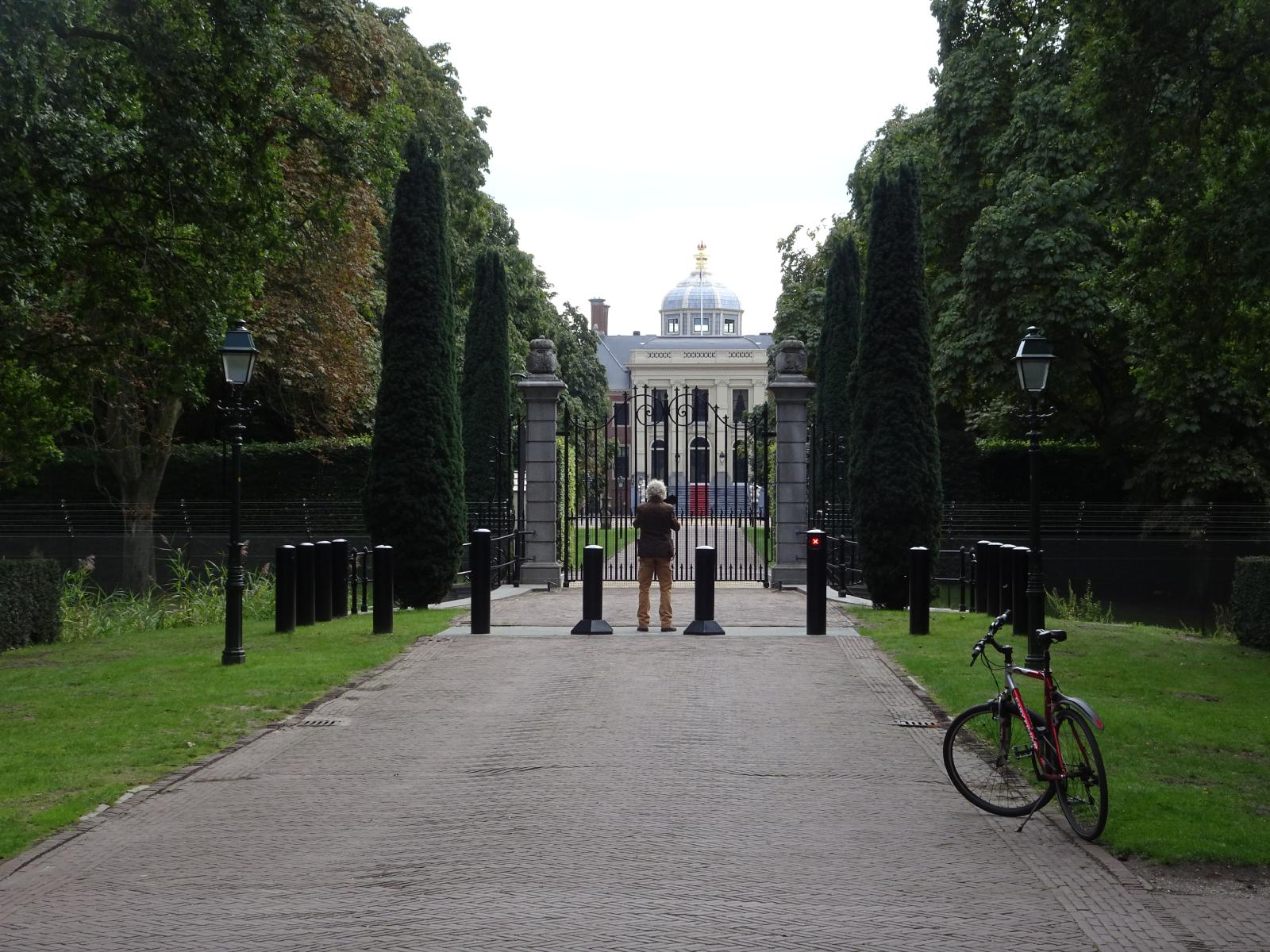 ![]() Just after I had taken this picture, the man, who is also taking a photograph, turned round and called "Do you want to see the Queen?" It turns out that this is the House in the Woods, one of three official residences for the Dutch monarch. Of course, the monarch has been a king for a few years now but perhaps this man still hasn't got used to that. UTC Time: 12:35, Tuesday 10 September 2019 Local Time: 14:35, Tuesday 10 September 2019 Estimate of longitude: 4° 20' 31.99" E = 4.342220° Estimate of latitude: 52° 5' 41.68" N = 52.094910° Possible error on position estimate: 5 metres | |