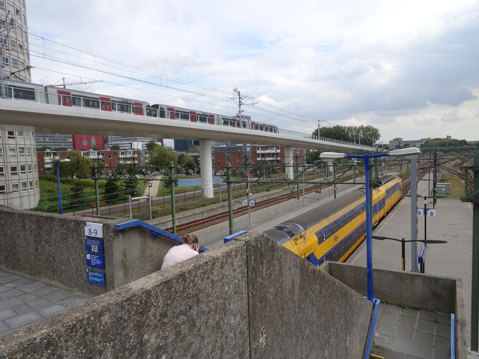 ![]() Trains arriving on two levels at once. UTC Time: 12:55, Tuesday 10 September 2019 Local Time: 14:55, Tuesday 10 September 2019 Estimate of longitude: 4° 19' 34.82" E = 4.326340° Estimate of latitude: 52° 4' 47.06" N = 52.079740° Possible error on position estimate: 5 metres | |