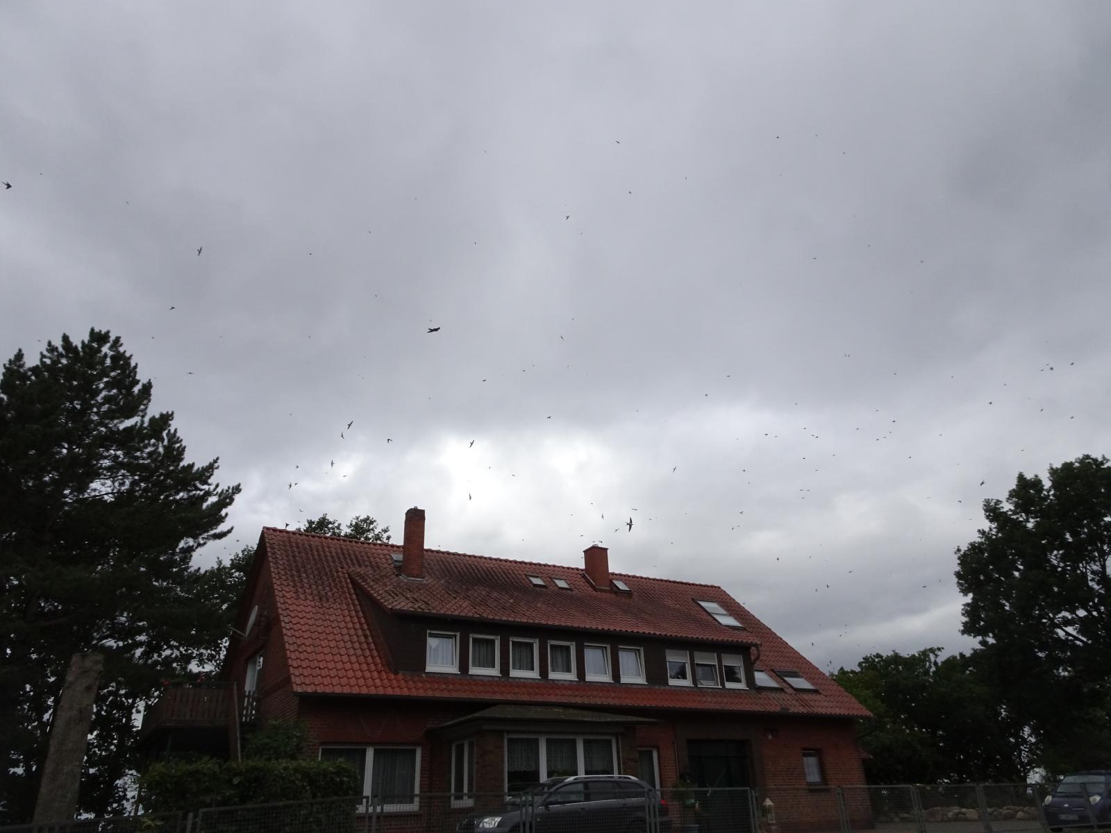 ![]() The sky over this one particular house was thick with birds. UTC Time: 10:10, Saturday 17 August 2019 Local Time: 12:10, Saturday 17 August 2019 Estimate of longitude: 9° 5' 6.83" E = 9.085230° Estimate of latitude: 52° 28' 43.54" N = 52.478760° Possible error on position estimate: 5 metres | |