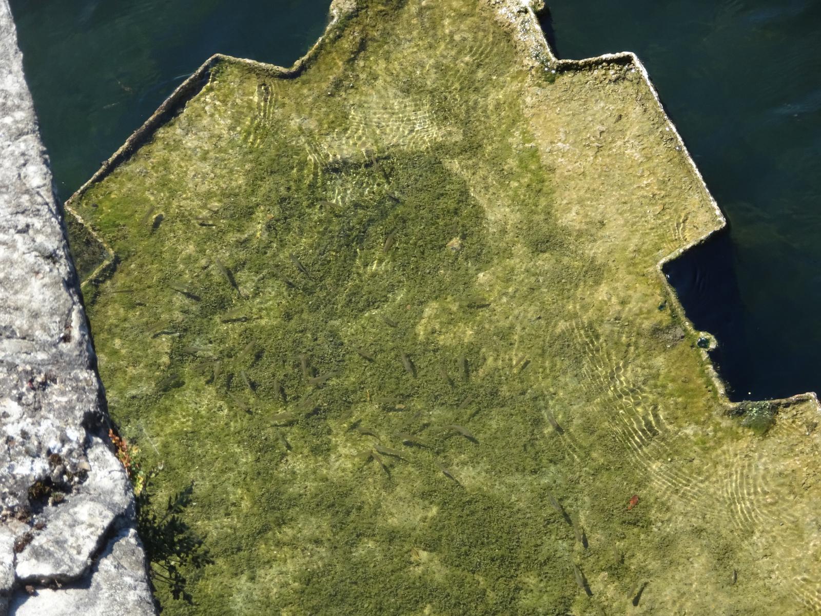 ![]() Fish in the shallow water above one of the bridge piers. UTC Time: 10:12, Wednesday 10 August 2022 Local Time: 12:12, Wednesday 10 August 2022 Estimate of longitude: 2° 41' 35.88" E = 2.693300° Estimate of latitude: 48° 18' 58.32" N = 48.316200° Possible error on position estimate: 5 metres | |