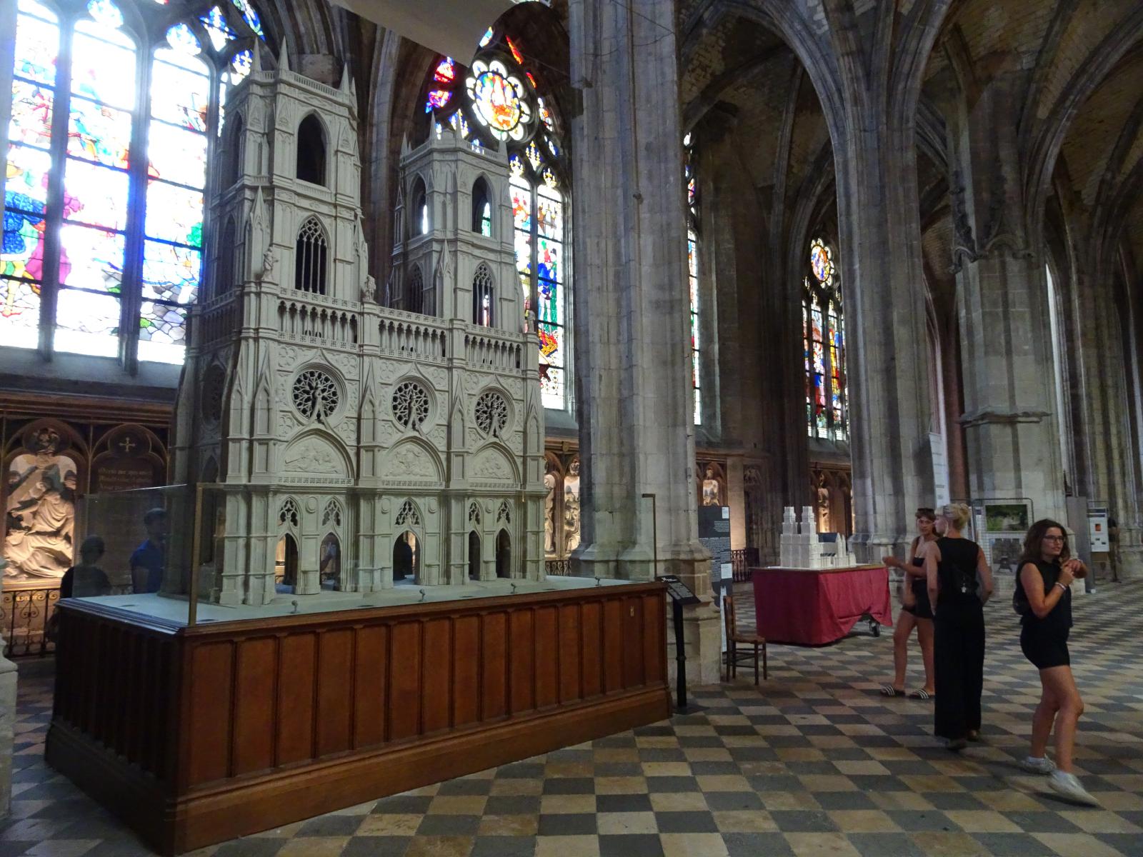 ![]() I don't think the small model is anything special but the big one is actually the architect's plan for the West entrance. It dates from 1740 because, remember, the cathedral was still being built then. The architect died soon after that and what was actually built above the round windows does not match this design. UTC Time: 13:39, Sunday 14 August 2022 Local Time: 15:39, Sunday 14 August 2022 Estimate of longitude: 1° 54' 35.14" E = 1.909760° Estimate of latitude: 47° 54' 5.54" N = 47.901540° Possible error on position estimate: 50 metres | |