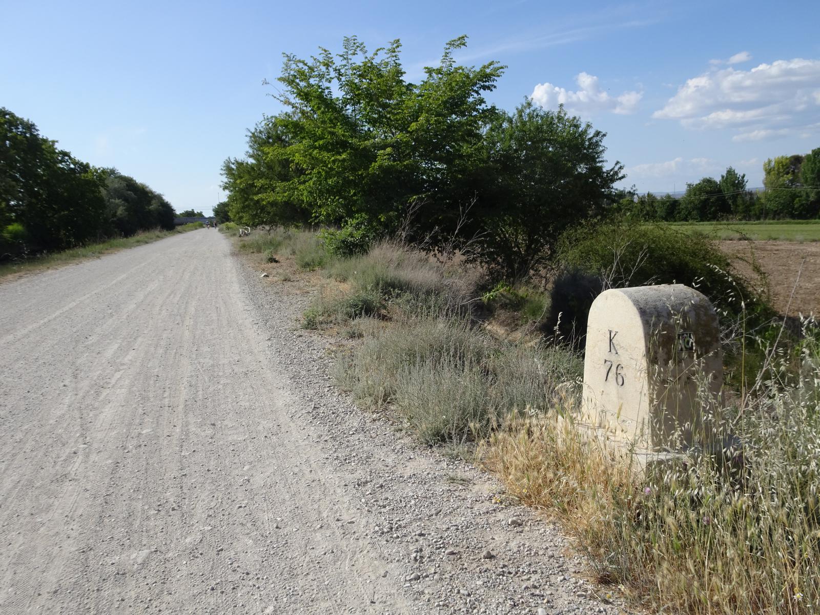 ![]() This looks like a milestone on the path along the canal. I only had to do 700 metres on the stones this evening and I walked part of that so the bike survived intact. It managed 36 km today after the second repair so I think it is at least fixed now even if it is more limited in where it can go than I previously thought. UTC Time: 16:01, Sunday 21 May 2023 Local Time: 18:01, Sunday 21 May 2023 Estimate of longitude: 0° 57' 46.08" W = -0.962800° Estimate of latitude: 41° 38' 41.75" N = 41.644930° Possible error on position estimate: 10 metres | |