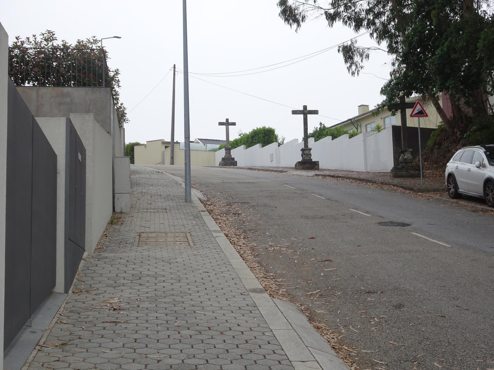 ![]() This road is very steep and lined with crosses. UTC Time: 16:10, Thursday 01 June 2023 Local Time: 17:10, Thursday 01 June 2023 Estimate of longitude: 8° 33' 53.35" W = -8.564820° Estimate of latitude: 41° 2' 4.24" N = 41.034510° Possible error on position estimate: 5 metres | |