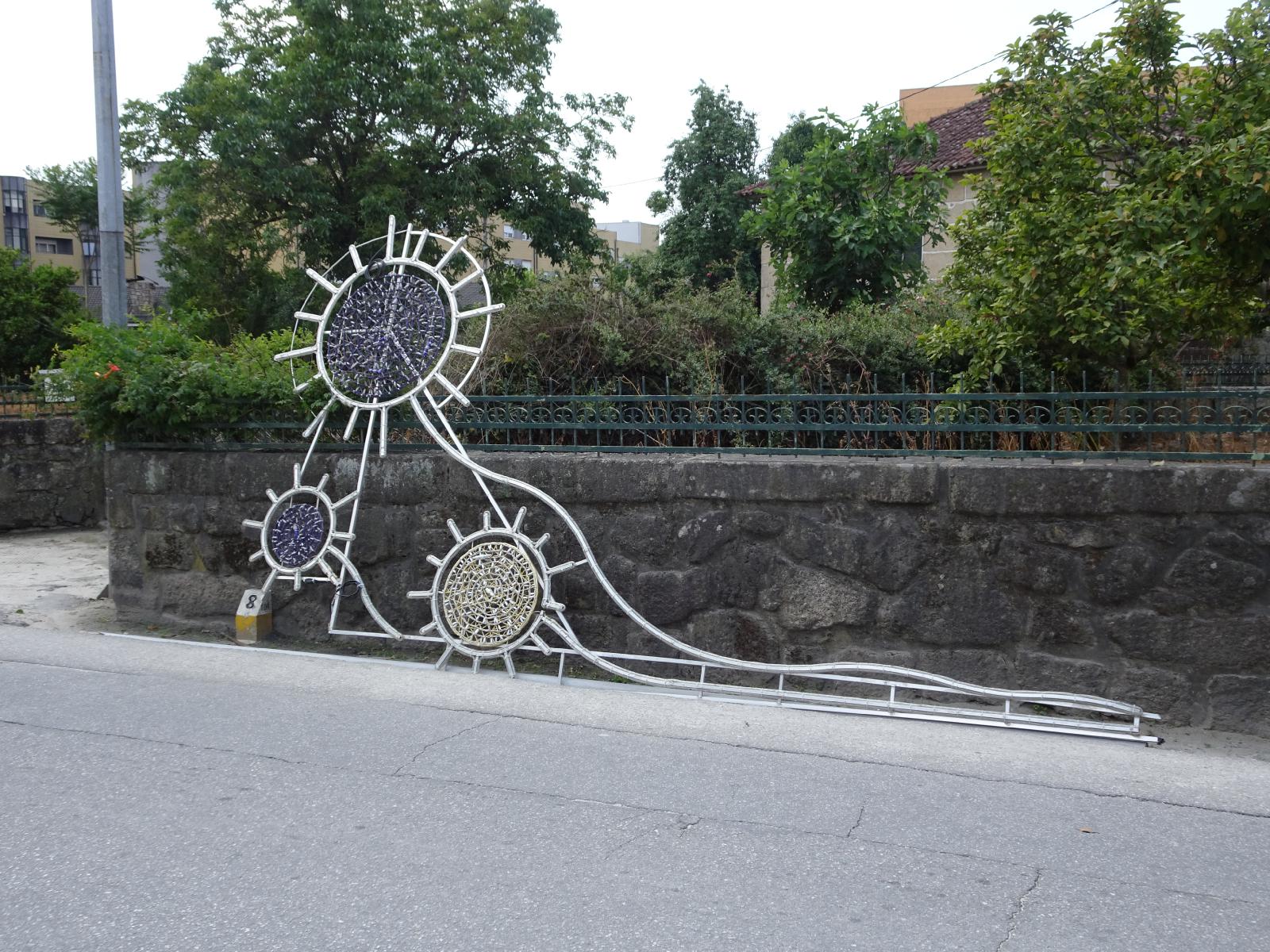 ![]() Decorative lights either on their way up or on their way down. Later, in a small village, I would drive down a road which had so many sets of lights like this above it that was almost a tunnel. UTC Time: 12:41, Saturday 03 June 2023 Local Time: 13:41, Saturday 03 June 2023 Estimate of longitude: 8° 20' 50.03" W = -8.347230° Estimate of latitude: 41° 29' 6.50" N = 41.485140° Possible error on position estimate: 5 metres | |