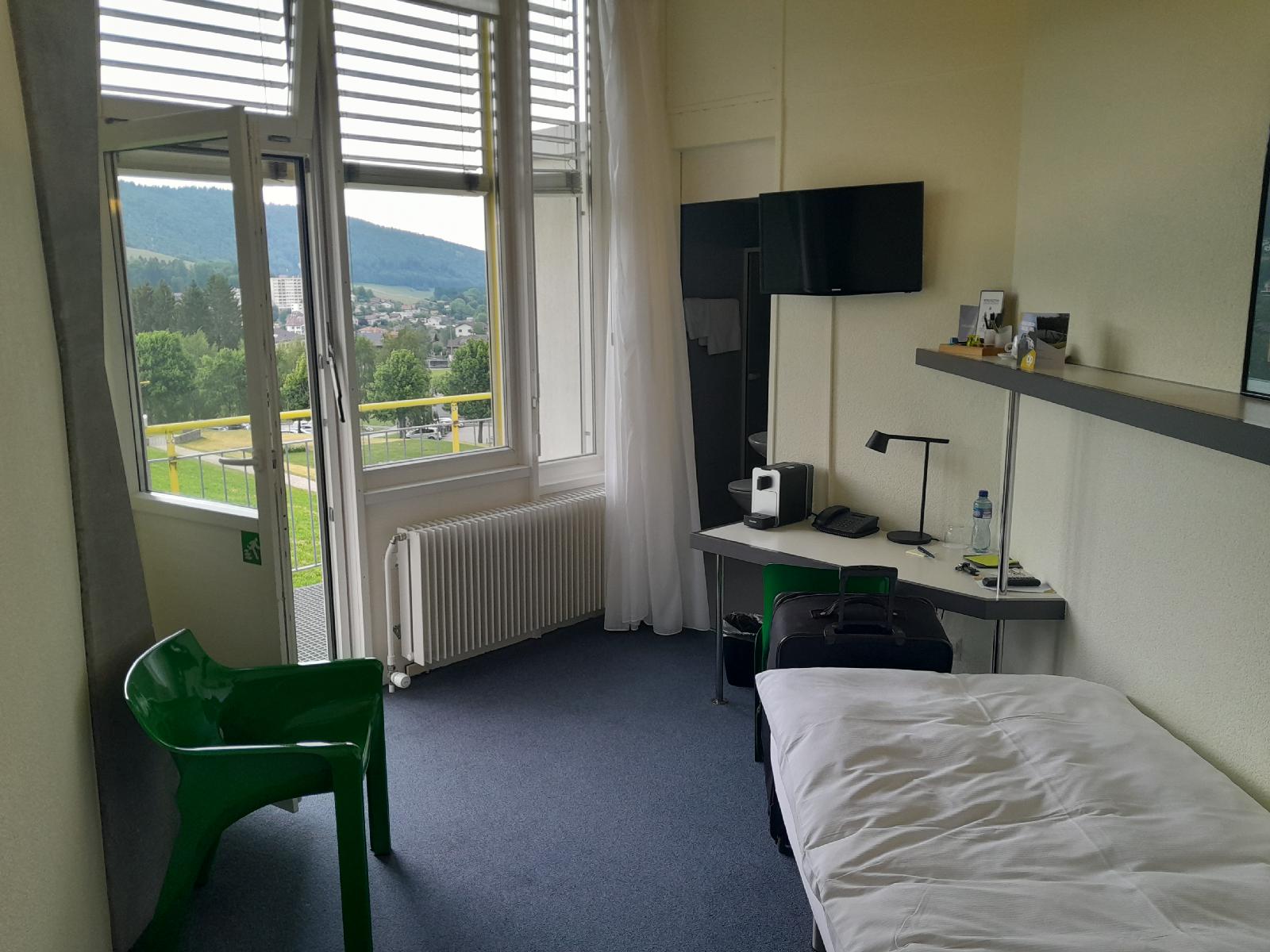 ![]() The room is a wedge of a circle so it's an unusual shape. The bathroom is aginst the outside wall and there is a door out to an exterior walkway. UTC Time: 17:35, Friday 09 June 2023 Local Time: 19:35, Friday 09 June 2023 Estimate of longitude: 7° 6' 8.06" E = 7.102240° Estimate of latitude: 47° 13' 11.03" N = 47.219730° Possible error on position estimate: 20 metres | |