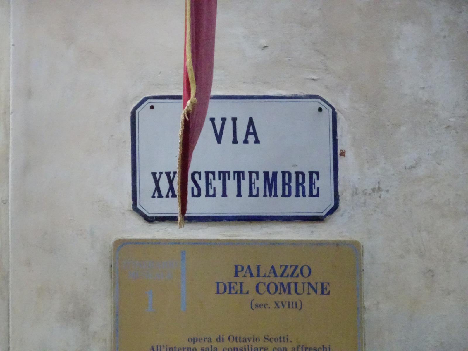 ![]() I quite like this picture with that ornate flag hanging in front of the sign but I will try to find an unobstructed one. UTC Time: 16:36, Thursday 11 May 2023 Local Time: 18:36, Thursday 11 May 2023 Estimate of longitude: 12° 17' 51.90" E = 12.297750° Estimate of latitude: 45° 53' 13.20" N = 45.887000° Possible error on position estimate: 5 metres | |