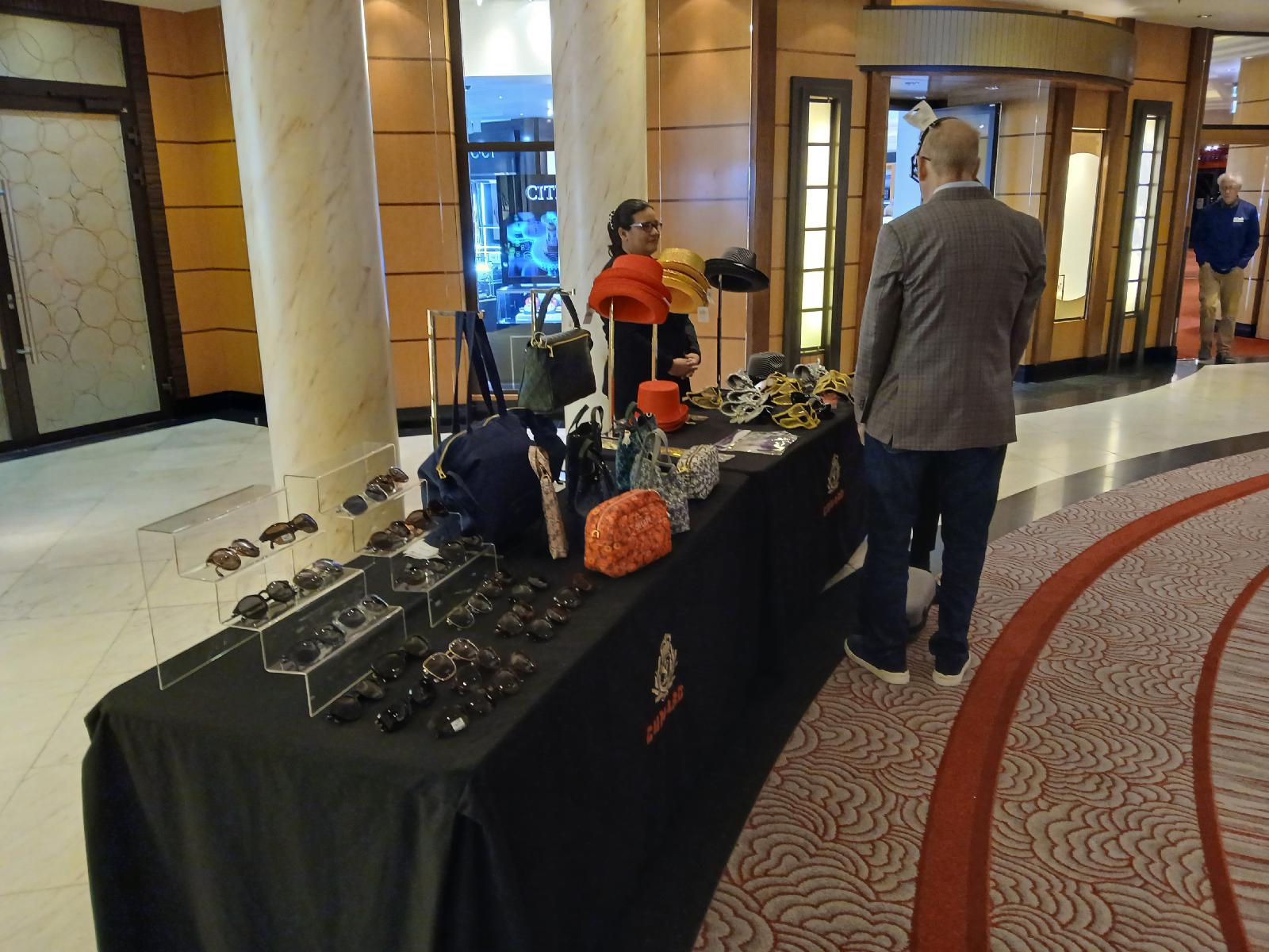 ![]() There is going to be a masked gala tonight so the place which normally sells sunglasses is now selling masks too. I won't be going to that because I don't even have a dinner jacket, and anyway it's my quiz night. I would like to give the people on the video call a tour of some of the ship's rooms but I don't know whether that will be possible because the gala will be going on in many of those rooms. UTC Time: 14:05, Friday 10 May 2024 Local Time: 14:05, Friday 10 May 2024 Estimate of longitude: 18° 54′ 13.18″ W = -18.903660° Estimate of latitude: 50° 38′ 40.24″ N = 50.644510° Possible error on position estimate: 500 metres | |