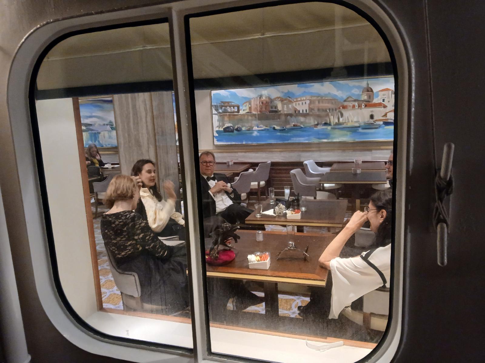 ![]() These people obviously went to the masked ball. There are two masks on the table. Apparently this buffet serves light snacks until one o'clock in the morning but even that time has passed now. UTC Time: 00:24, Saturday 11 May 2024 Local Time: 00:24, Saturday 11 May 2024 Estimate of longitude: 13° 46′ 20.46″ W = -13.772350° Estimate of latitude: 50° 22′ 51.10″ N = 50.380860° Possible error on position estimate: 500 metres | |