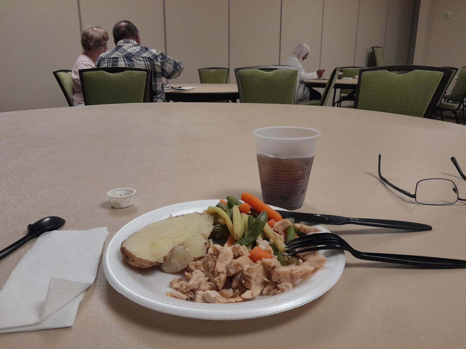 ![]() The buffet last night was exactly the same as the one in Poplar Bluff so I assumed it must be the same in every Drury Inn every night. This is different though. Perhaps it's different each day of the week. Last night and Poplar Bluff were both Tuesdays. This hotel is busy this evening. All the tables in the restaurant and in the lobby are occupied. This overflow room is quite though. UTC Time: 22:57, Wednesday 24 April 2024 Local Time: 17:57, Wednesday 24 April 2024 Estimate of longitude: 88° 56′ 56.00″ W = -88.948890° Estimate of latitude: 38° 18′ 49.46″ N = 38.313740° Possible error on position estimate: 50 metres | |