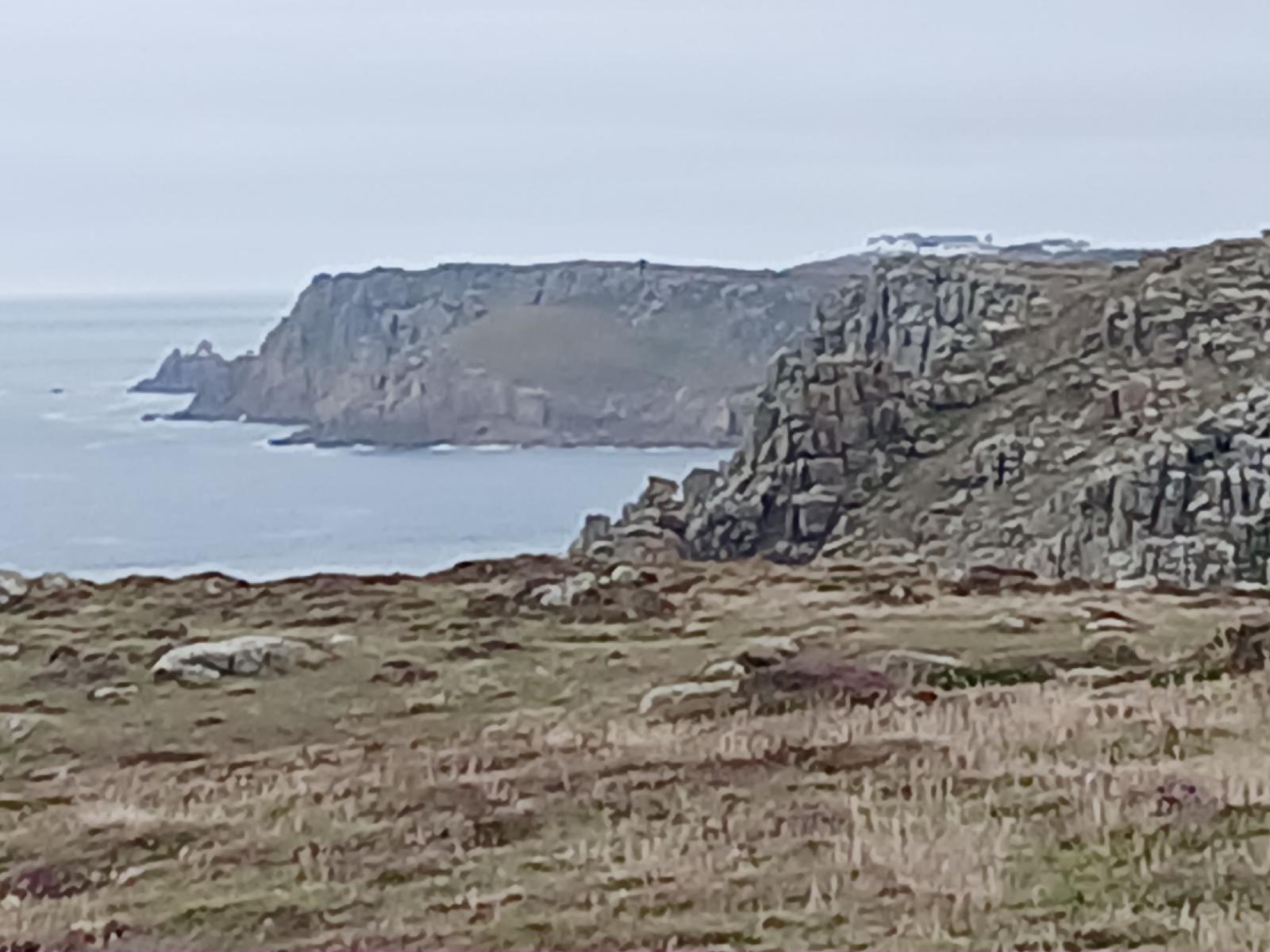 ![]() Looing from Carn Guthensbras to the rubber band's next contact point, which is Pordenack Point, about 3 km away. The buildings on top of the cliff are the visitor centre at Land's End, which is slightly further. UTC Time: 17:08, Wednesday 30 July 2025 Local Time: 18:08, Wednesday 30 July 2025 Estimate of longitude: 5° 40′ 51.46″ W = -5.680960° Estimate of latitude: 50° 2′ 12.80″ N = 50.036890° Possible error on position estimate: 5 metres | |