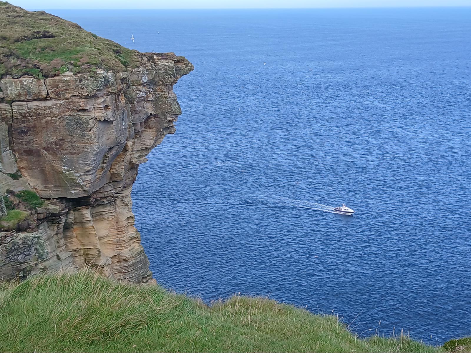 ![]() Cliffs and a boat. UTC Time: 10:30, Thursday 28 August 2025 Local Time: 11:30, Thursday 28 August 2025 Estimate of longitude: 3° 22′ 14.27″ W = -3.370630° Estimate of latitude: 58° 40′ 12.68″ N = 58.670190° Possible error on position estimate: 5 metres | |