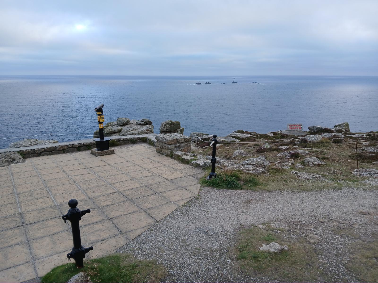 ![]() Land's End, the extreme point on bearings from 250 to 260 degrees. UTC Time: 19:18, Wednesday 30 July 2025 Local Time: 20:18, Wednesday 30 July 2025 Estimate of longitude: 5° 42′ 53.06″ W = -5.714740° Estimate of latitude: 50° 3′ 55.94″ N = 50.065540° Possible error on position estimate: 5 metres | |