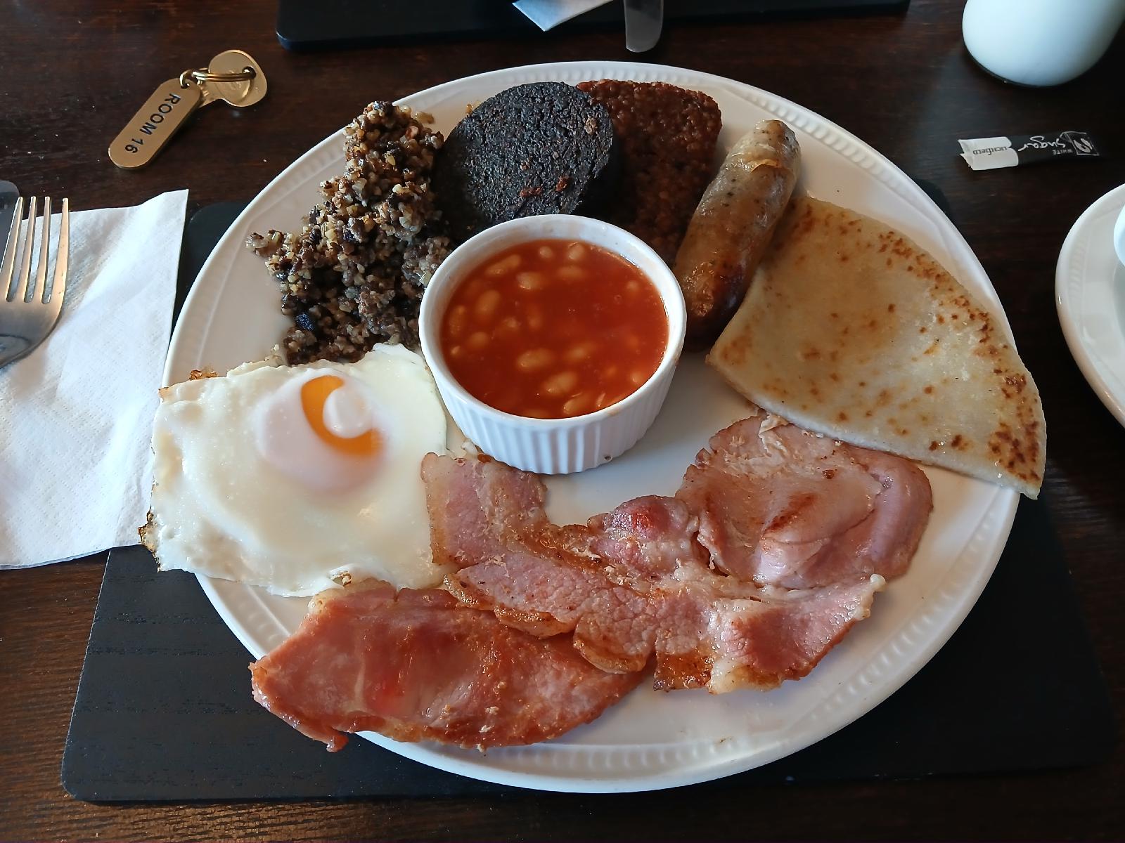 ![]() The composition of a fried breakfast has changed now that I'm in Scotland. This one includes haggis, a lorne and a tatty scone. UTC Time: 07:44, Sunday 17 August 2025 Local Time: 08:44, Sunday 17 August 2025 Estimate of longitude: 3° 15′ 57.67″ W = -3.266020° Estimate of latitude: 55° 3′ 35.32″ N = 55.059810° Possible error on position estimate: 50 metres | |