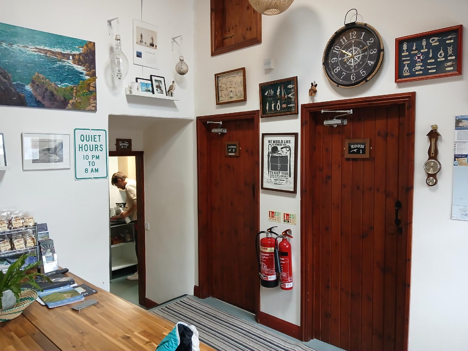 ![]() This place calls itself a hostel but that description didn't really fit my room. This area is a bit more hostelly though. The man in this picture is a French guest doing his washing up. The owner has assured me that the drizzle is just sea mist and that it will clear as soon as I ride inland but I'm not in any hurry to leave. I've only got to go 20 km today and the next hotel wont let me in for nearly 5 hours yet. He also showed me the bike shelter here where mine could have stayed dry overnight. Thinking about it, I knew there was a shelter because I saw a picture of it when I booked this place. I didn't know it would rain though. UTC Time: 09:13, Thursday 31 July 2025 Local Time: 10:13, Thursday 31 July 2025 Estimate of longitude: 5° 41′ 47.69″ W = -5.696580° Estimate of latitude: 50° 3′ 56.23″ N = 50.065620° Possible error on position estimate: 10 metres | |