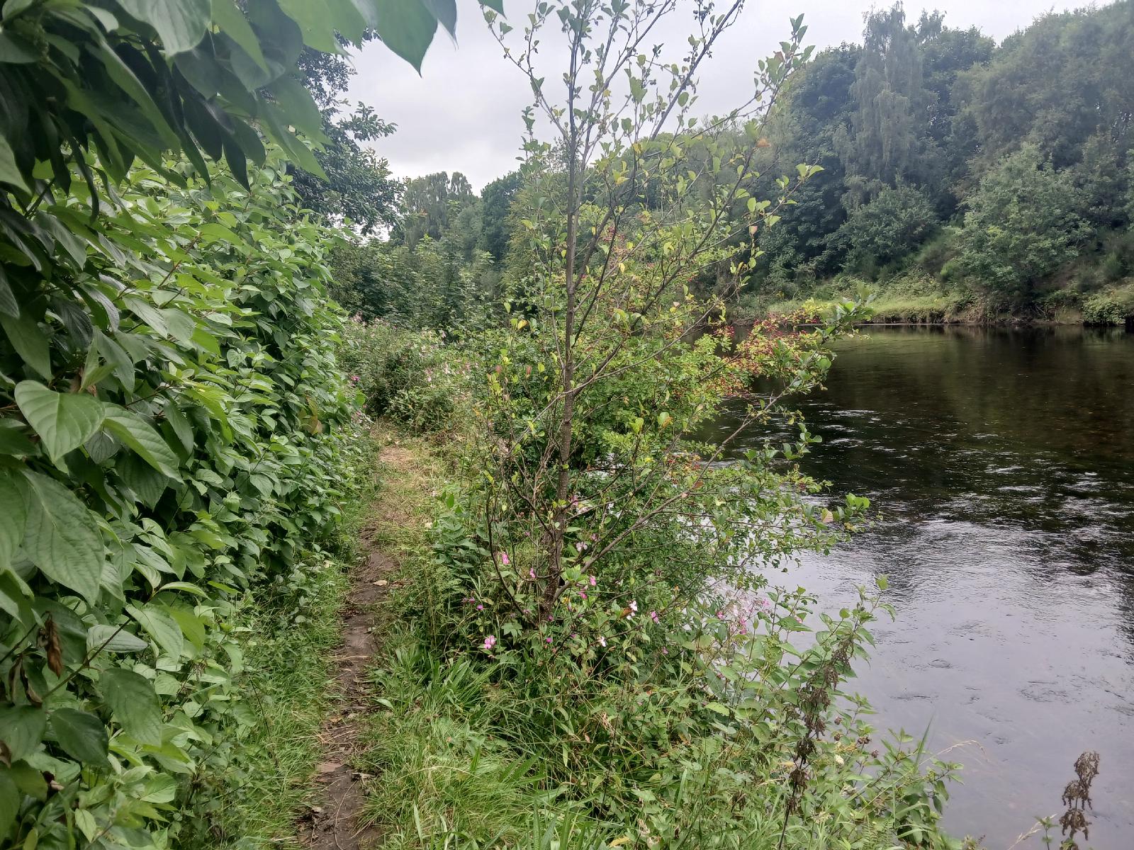 ![]() Oh, I see what's happened. The cycle route cuts off a big oxbow bend of the river but somehow I missed the sign so I'm going the long way, clinging to the riverbank on this ropey path. UTC Time: 12:38, Tuesday 19 August 2025 Local Time: 13:38, Tuesday 19 August 2025 Estimate of longitude: 4° 34′ 21.00″ W = -4.572500° Estimate of latitude: 55° 58′ 27.52″ N = 55.974310° Possible error on position estimate: 10 metres | |